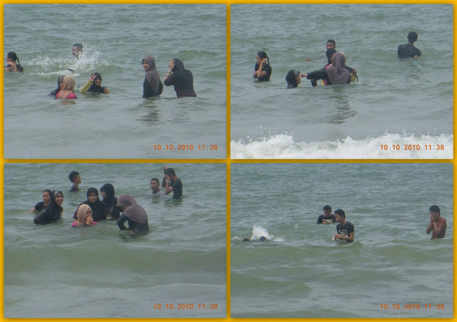 Aktiviti main pasir memang takkan dilupakan kalau pergi pantai, tapi untuk budak - budak sengal macam diaorang ni, tak mainlah bina istana pasir. Kita main tanam orang, siap baca talkin sekali. Tinggal lupa tempah batu nisan jer. Takpun main pasir kepal baling kat orang. Bukan tu jer, siap main bola sepak pantailah dan macam-macam lagi. Ingat solat ke tak masing - masing ni.